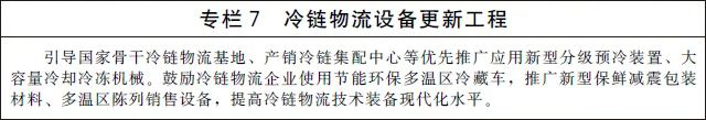 加强冷链物流技术基础研究和装备研发。聚焦冷链物流相关领域关键和共性技术问题,部署国家级技术攻关,加强冷链产品品质劣变腐损的生物学原理及其与物流环境之间耦合效应、高品质低温加工、高效节能与可再生能源利用、环保制冷剂及安全应用、冷链安全消杀等基础性研究,夯实冷链物流发展基础。在“十四五”国家重点研发计划中支持冷链物流相关技术研发,从源头提升我国冷链技术装备现代化水平。