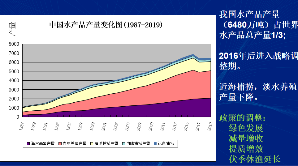 生产、消费水产品结构的调整。中国人生活水平的提升,食物结构也发生变化。我们以往的膳食结构是摄入较多的低营养级种类,较少的高营养级水产品。随着国人生活水平的提升,食物结构也会发生改变,从低营养级向高营养级转变,其典型的表现就是海水养殖的大黄鱼、金鲳鱼、石斑鱼产量增长明显。