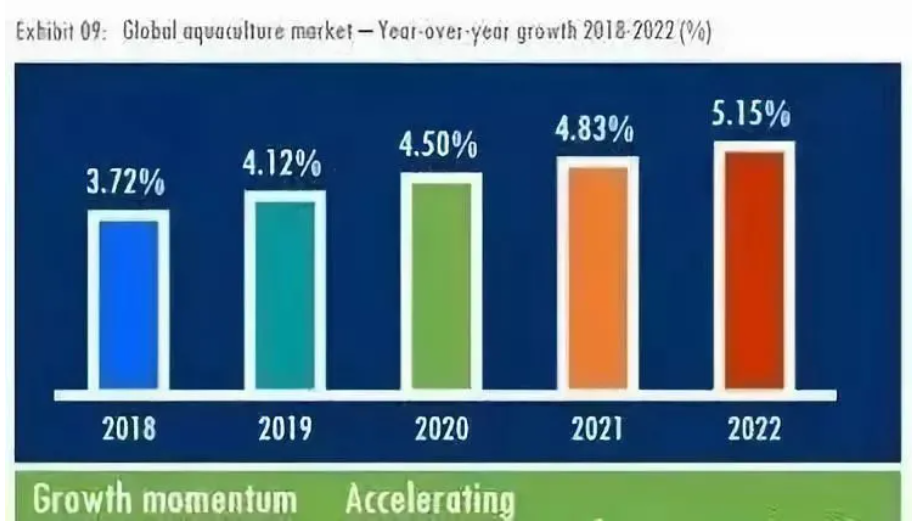 目前,全球水产养殖增长趋势较强,据预计将到2022年全球水产需求的激增以及野生捕捞的减少是推动水产养殖增长的主要因素,另外经济全球化带来了物流系统和贸易设施的改善,为水产养殖市场的发展提供了有利的环境,而零售行业的增长也推动了市场的发展。