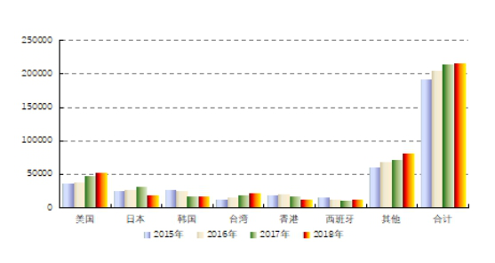 针对国际贸易形势,我国虾类出口企业近年来在市场多元化开拓方面不断努力,除了传统的美国、日本、欧盟和韩国4大传统出口市场,在北美、大洋洲和东盟均开拓了新的市场,如加拿大、墨西哥、澳大利亚、马来西亚、新加坡等,对这些新市场的出口少则6000~7000吨,多则达到万吨以上;然而受全球经济不景气影响,2018年继连续的增长之后仍表现出增长趋势放缓,从图6可以看出,不仅对美国的出口增长较前几年放缓,对日本、韩国和中国香港的出口也均出现了负增长。2019年的中美贸易战,更使我国虾类出口雪上加霜。