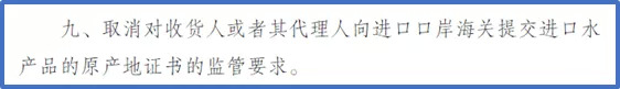 8月31日,海关总署发布2020年第99号公告,调整部分进出境货物监管要求,其中第九条指出,将取消对收货人或者其代理人向进口口岸海关提交进口水产品的原产地证书。